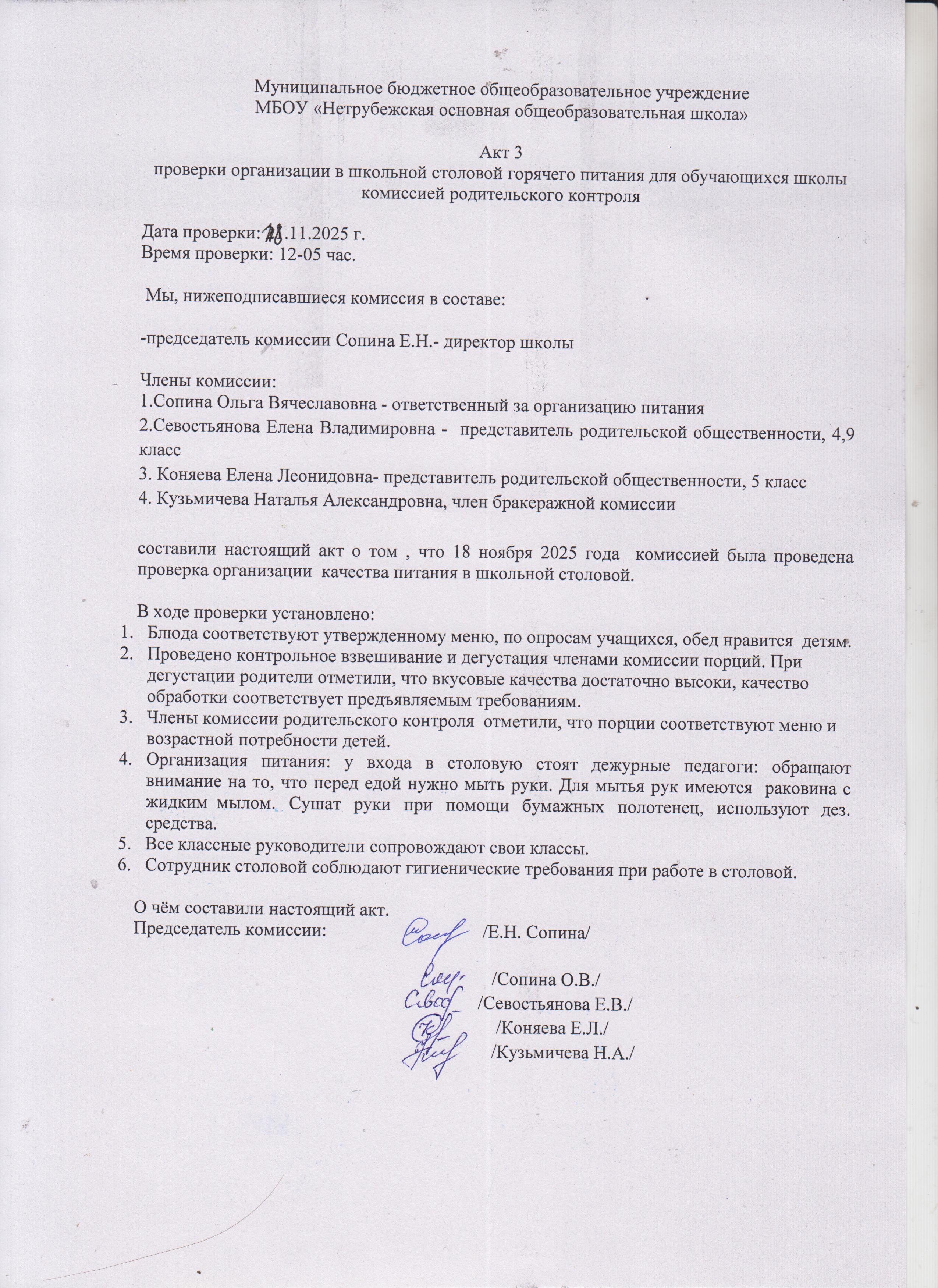 Акт №3 от18.11.2025 "О проверке организации школьного питания"
